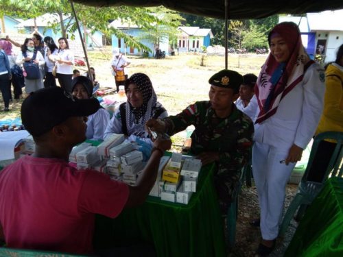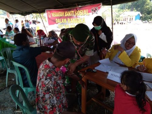 Guna meningkatkan kualitas kesehatan masyarakat, Satgas Yonif Para Raider 501 Kostrad Pos Ramil Muara Tami bekerja sama dengan Puskesmas Pembantu Kampung Mosso menggelar acara Bhakti Sosial (Baksos) Pengobatan Gratis di Balai Desa Kampung Mosso, Distrik Muara Tami, Kota Jayapura, (4/10).