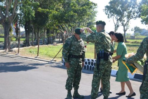 Setibanya di pintu gerbang utama, Letkol Inf Ade David Siregar, S.I.P yang didampingi isteri menerima penghormatan dari Dinas Jaga Keamanan, serta pengalungan bunga dari Kasbrigif Mekanis Raider 6/TSB/2 Kostrad, Letkol Inf Roynald Sumendap dan pemberian bunga tangan oleh Ny. Roynald Sumendap kepada Ny. Ade David Siregar, S.I.P.