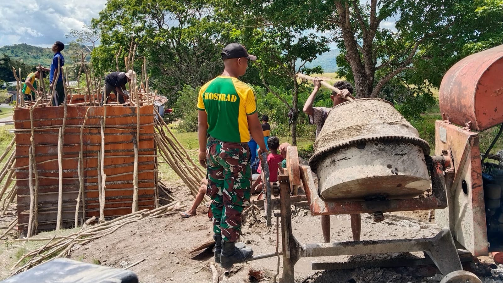 Dengan penuh semangat gotong royong, personel Pos Laktutus bersama masyarakat setempat bahu-membahu melaksanakan proses pembangunan penampungan air. Mulai dari penggalian, penyusunan material hingga tahap penyelesaian, seluruh kegiatan dilakukan secara bersama sebagai bentuk kemanunggalan TNI dengan rakyat. Kehadiran Satgas tidak hanya memberikan bantuan tenaga, tetapi juga menjadi penyemangat bagi warga dalam membangun fasilitas yang sangat dibutuhkan tersebut.