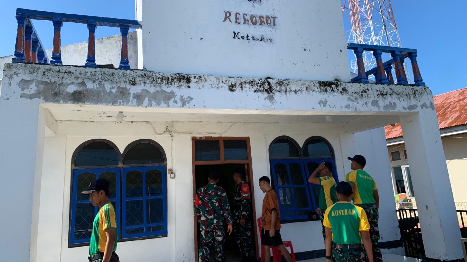 Personel Pos Motaain bersama masyarakat bekerja bahu-membahu membersihkan halaman, merapikan ruangan dalam, serta memperbaiki bagian dinding yang sudah mengalami perubahan warna. Proses pengecatan ulang dilakukan untuk mempercantik tampilan gereja sehingga tampak lebih bersih dan layak digunakan untuk kegiatan keagamaan.