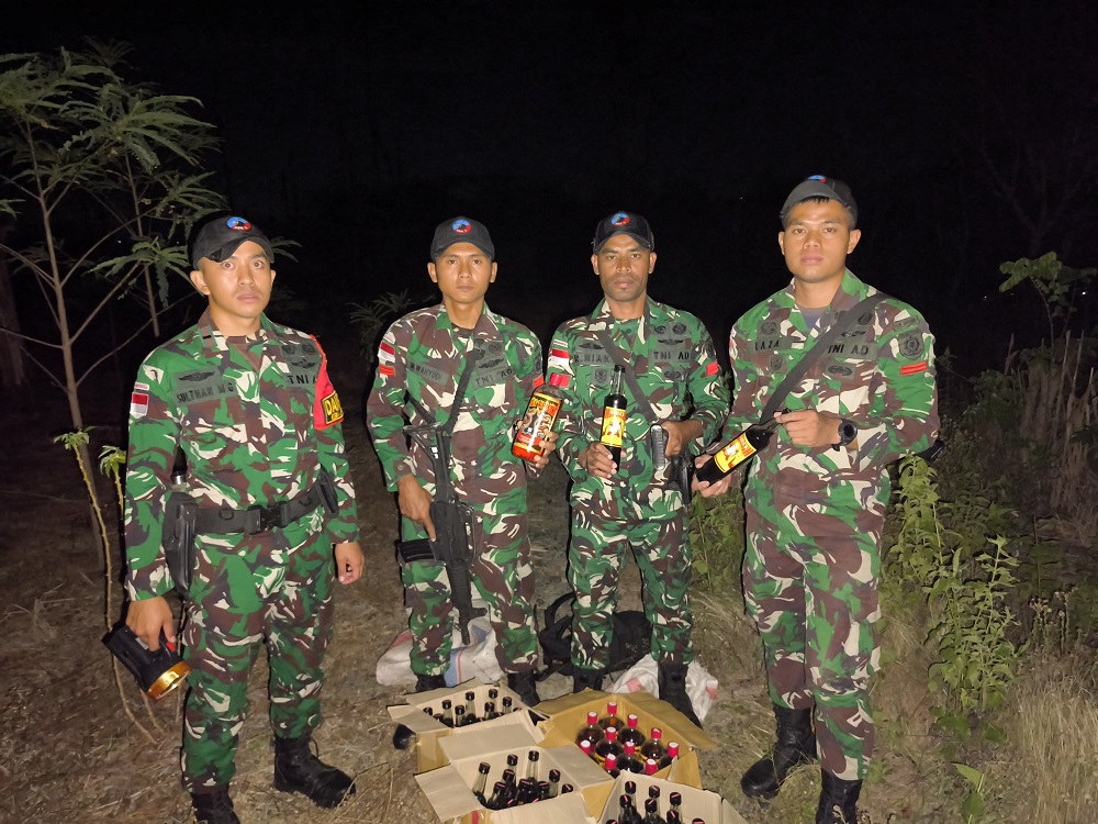 “Kami mengumpulkan informasi dari warga setempat dan saat itu juga kami berhasil menggagalkan upaya penyelundupan barang ilegal berupa minuman keras. Kami berusaha menangkap pelaku, namun yang bersangkutan melarikan diri ke wilayah Timor Leste,” ungkap Letda Arh Sulthan.