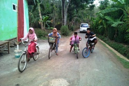 Batang – “Jumat Sore Ceria” Terlihat keceriaan anak-anak Dusun/Desa Durenombo Rt/Rw. 2 Kecamatan Subah, bersepeda hendak menuju lokasi pengaspalan jalan TMMD Batang. Dari kiri, Siti Nuraini (11) Lina Khofifah (10), Andi Putra Wijaya (10) dan Yudi Irawanto (12).