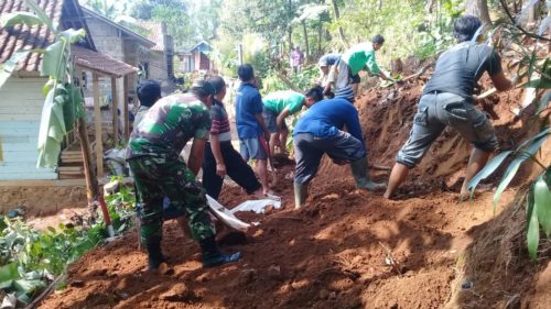 Batang – Program TMMD Reguler ke 103 di Desa Durenombo Kecamatan Subah Kabupaten Batang tidak luput dari sosialisasi bencana alam. Untuk itu dalam pelaksanaan TMMD Satgas dibantu warga melaksanakan karya bakti pemerataan tanah yang rawan longsor. Karya bakti tersebut dilakukan di samping rumah Surip (48), warga Dukuh Durensari Rt 02 Rw 01, diketahui tanah disekitar rumah Surip merupakan tanah rawan longsor jika turun hujan.