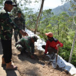 PB|Banjarnegara – Upaya perkuatan menahan tebing rawan longsor sudah 100 persen, dilakukan dengan pembronjongan dan panambahan talud karung tanah sepanjang 56 meter.