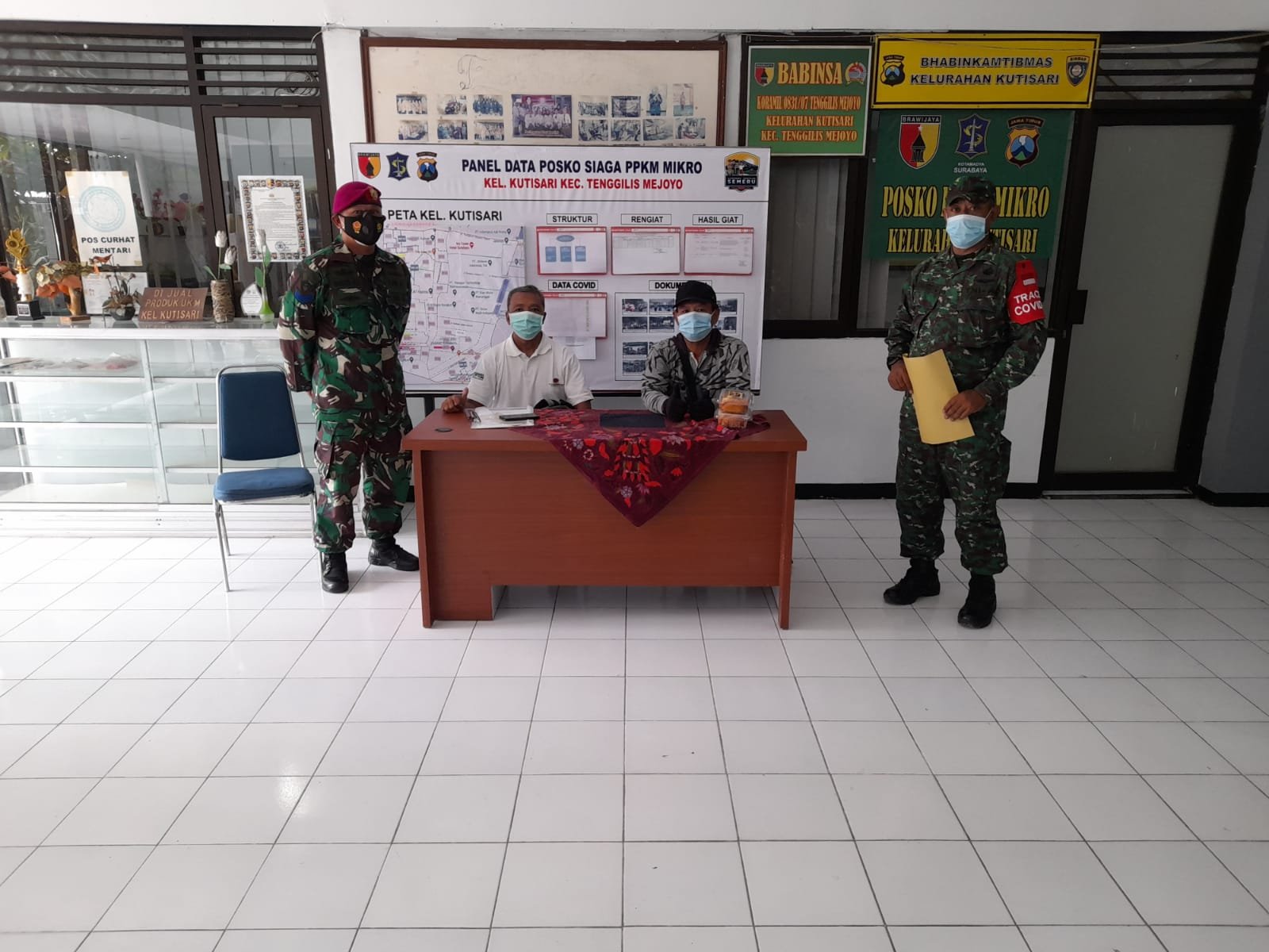 Surabaya – Anggota BKO dari Koramil 0831/07 Tenggilis mejoyo melaksanakan pemantaun dan himbauan kepada warga yang akan berkunjung mengurus admintrasi di kelurahan kutisari Kecamatan Tenggilis mejoyo agar selalu mematuhi dan mentaati Protokol kesehatan Perwali no 02 tahun 2021 tentang pemberlakuan kegiatan PPPK Mikro.
