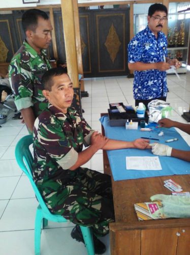 PB | Cilacap – Babinsa Purwosari Serka Paimun dan 2 orang anggota Koramil 16/Wanareja Sertu Abdul Rochmat dan Serda Heriyadi melaksanakan giat Donor darah rutin setiap 3 bulan sekali yang diadakan oleh PMI Cilacap bertempat di pendopo kecamatan Wanareja. Kamis (4/08)