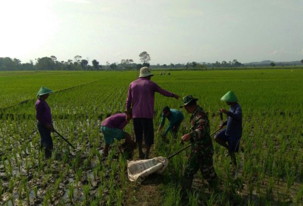 PB|PURBALINGGA – “Gropyok tikus” menggunakan tongkat dan cangkul di areal persawahan warga desa Karangjambu, membuat salah satu Satgas TMMD Reguler 101 Purbalingga, Serda Sebo Kahono penasaran dan mendatangi para petani Purbasari tersebut.