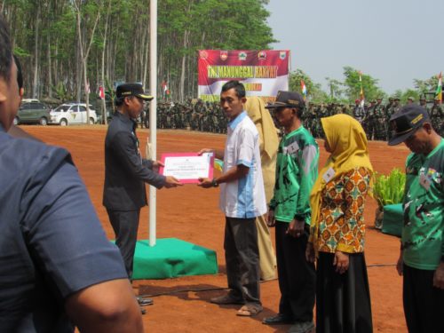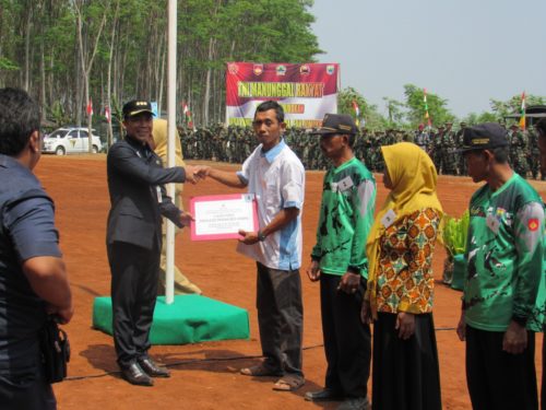 Batang – Bupati Batang, H. Wihaji, S.Ag. M.Pd, juga menyerahkan bantuan dari Dinas Peternakan dan Kesehatan Hewan Provinsi Jawa Tengah berupa dana sebesar 12 juta rupiah guna pengadaan alat pengolahan daging, selepas pelaksanaan Upacara Pembukaan TMMD Reguler 103 Batang, di Lapangan Desa Cluwuk Kecamatan Subah. Senin (15/10/18).