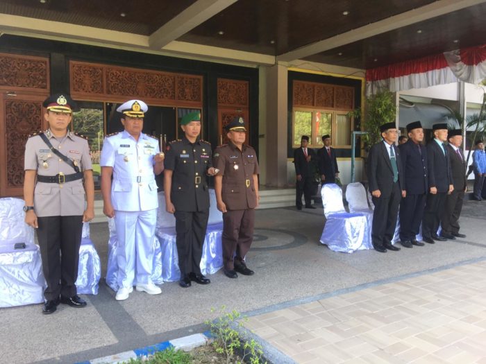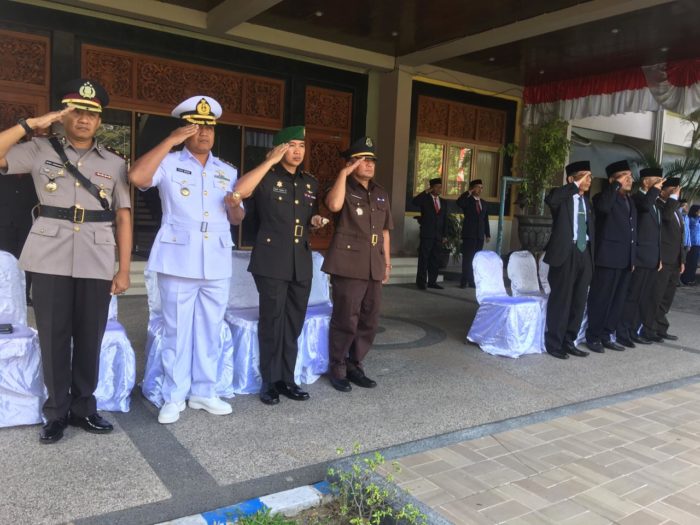 Madura – Komandan Pangkalan TNI Angkatan Laut ( Danlanal) Batuporon, Lantamal V, Koarmada II, Letkol Laut (P) Teguh Wibowo M. Tr. Hanla menghadiri Upacara Bendera dalam rangka memperingati Hari Kebangkitan Nasional yang diselenggarakan di Lapangan Kantor Pemkab.Bangkalan Jln. Soekarno Hatta No.35 Bangkalan, Dengan tema “Bangkit Untuk Bersatu”, Adapun bertindak sebagai Irup Wakil Bupati Bangkalan Drs. Muhni MM sebangai Komandan Upacara Iptu Eko, Senin, (20/5).