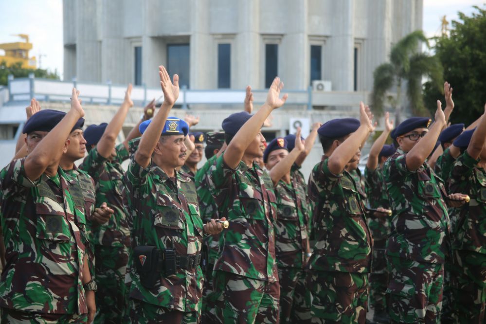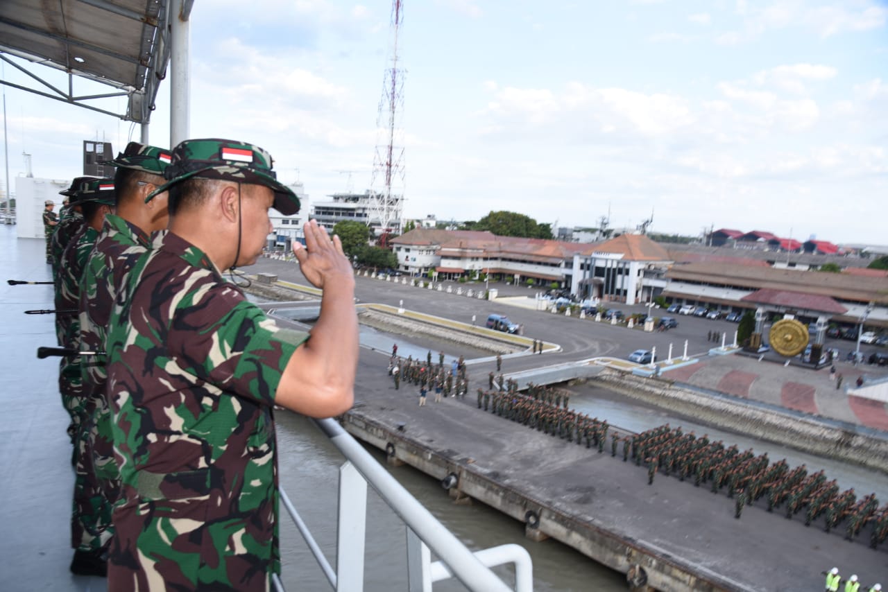 Dilepas oleh Kaskoarmada II Laksma TNI Ahmadi Heri Purwono, S.E.,M.M., para Asisten, dan Kepala Dinas di jajaran Koarmada II, Pangkoarmada II bergabung bersama para prajurit lainnya yang juga on board di KRI Makassar-590 menuju Pantai Banongan Situbondo.