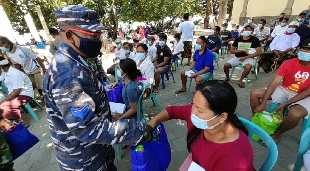 Bandung – Dalam rangka penanggulangan bencana non alam penyebaran wabah Covid-19, melalui program Bhakti Sosial (Baksos) Koarmada II TA 2020 di wilayah kerja Lanal Denpasar Bali, Komandan Pangkalan TNI Angkatan Laut (Danlanal) Denpasar Bali Kolonel Laut (P) Ketut Budiantara, S.E. membagikan 100 paket sembako kepada masyarakat pesisir dan nelayan di Balai Nelayan Dharma Bakti, Desa Jimbaran, Kuta Selatan, Kabupaten Badung, Rabu (22/7).