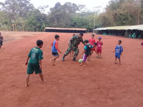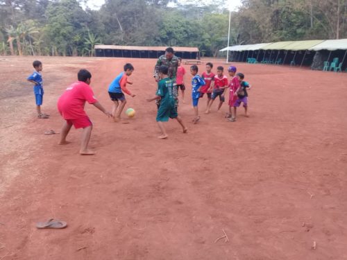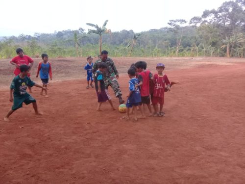 Seakan tak merasa terganggu atau jengah, Serka Hermansyah, anggota Satgas TMMD yang mengijinkan anak-anak tersebut bermain, bahkan ia sendiri ikut adu tangkas mengolah bola menjadi permainan yang menarik. “Kami ijinkan anak-anak bermain bola meski lapangan sendang digunakan untuk persiapan upacara pembukaan TMMD,” ujarnya, Jum’at (12/10/18).