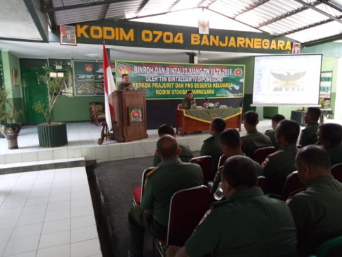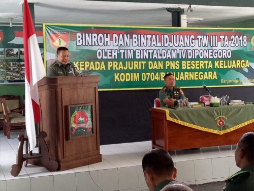 Banjarnegara – Sebagai tameng setiap diri Warga Negara Indonesia dalam menyaring dan menangkal berbagai ideologi yang masuk dan mempengaruhi kehidupan masyarakat, terutama yang bertentangan dengan Ideologi Pancasila sebagai dasar negara, keluarga besar Kodim 0704 Banjarnegara diberikan Bintalidjuang.