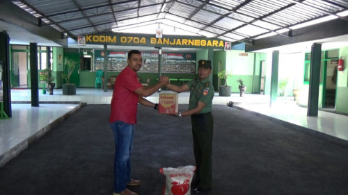 Terlihat bantuan diserahkan secara simbolis kepada Pasiter Kodim Banjarnegara, Kapten Inf. Suharsana di Makodim 0704.(pendim0704|red|noven)