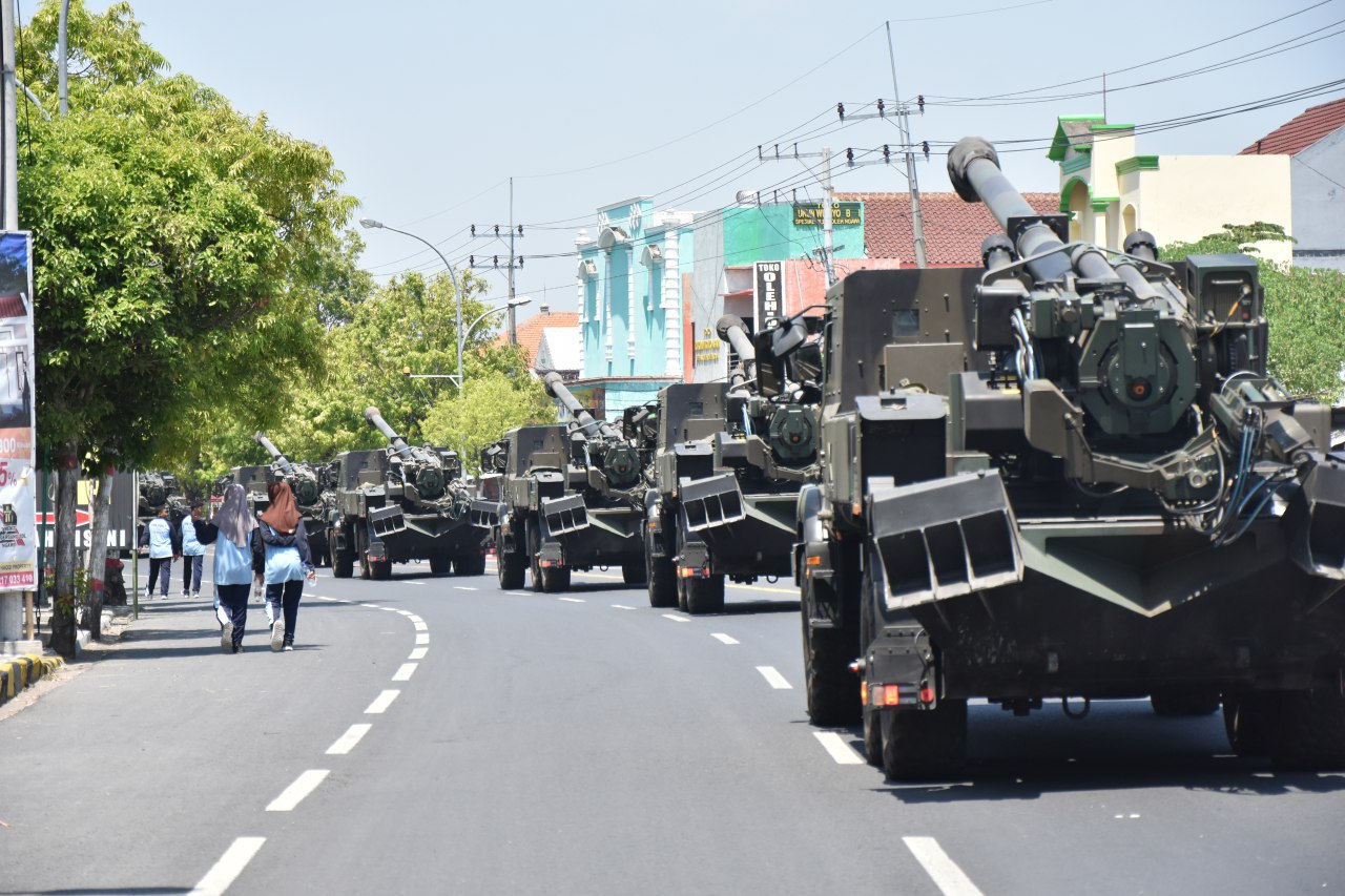 Ngawi – Suasana pagi hari di Kabupaten Ngawi, Jawa Timur, nampak tak seperti biasanya. Sebab, masyarakat Ngawi seakan dihibur dengan adanya kirab 18 pucuk Meriam 155 MM Caesar yang merupakan senjata andalan milik Yonarmed 12 Kostrad. Jumat (15/11).