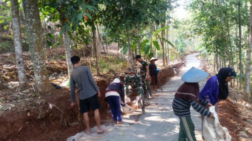 Bersama warga nampak Berm dilakukan oleh serda Wawan disepanjang jalan yang baru saja dibuat,nampak juga telah dilakukan Berm ternyata menambah kerapian jalan sehingga tampak seperti jalan yang yang baru semuanya, baik dari bahu jalan maupun selokan kanan kirinya.(kodim batang|red|noven)