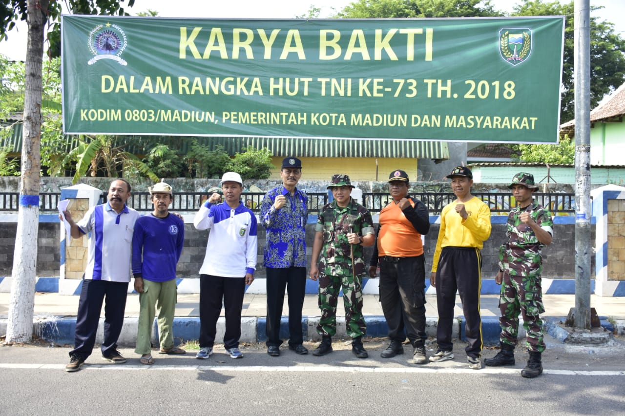 Komandan Kodim 0803/Madiun Letkol Czi Nur Alam Sucipto, S.Sos mengatakan “kegiatan Karya Bakti ini diselenggarakan dalam rangka rangkaian dari HUT TNI Ke 73 dan sekaligus sebagai bentuk kepedulian TNI guna mewujudkan lingkungan yang bersih dan sehat.”