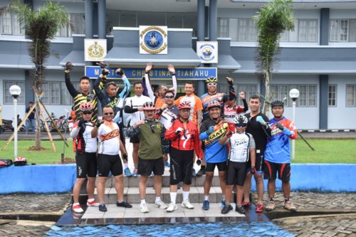 PB | Ambon – Dalam rangka menyambut HUT TNI AL ke – 71, Minggu (11/09), Lantamal IX Ambon melaksanakan Gowes bersama dipimpin oleh Komandan Lantamal IX Laksamana Pertama TNI Nur Singgih Prihartono S.E., M.Tr (Han). Pukul 07.30 WIT seluruh peserta telah berkumpul di depan Mako Lantamal IX, diawali dengan check up tensi tekanan darah dan senam peregangan.