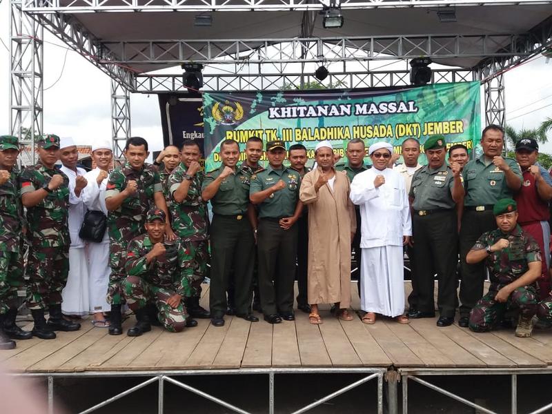 Jember – Dalam rangka memperingati Maulid Nabi Muhammad SAW Yayasan Dahrul Hikmah An Nawawi, DKT Jember dan Ton Kesehatan Yonif Raider 515 Kostrad mengadakan khitanan massal gratis kepada anak-anak di Tanggul Kabupaten Jember. (22/11).