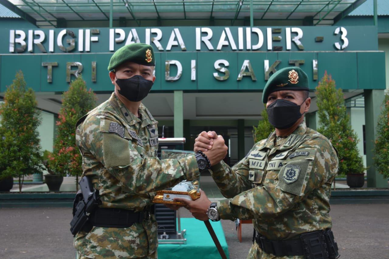 Maros – Komandan Brigif Para Raider 3 Kostrad memimpin acara Penyerahan Jabatan Komandan Detasemen Markas (Dandenma) dan Tradisi Korps pelepasan Perwira Brigif PR 3 Kostrad bertempat di Mabrigif Para Raider 3 Kostrad Kariango, Maros, Sulawesi Selatan. Sabtu (9/06/2022).