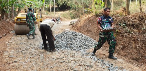 Batang – Komandan Kodim 0736/Batang Letkol Kav Henry Rudi Judianto Napitupulu turut melangsir material batu seplit yang menghalangi jalan. Dandim tidak merasa malu berjibaku bersama satgas dan warga mengangkut material yang menutupi badan jalan dengan menggunakan alat seadanya, Sabtu (13/10/18).