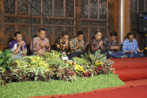 Acara penutup malam tasyakuran peringatan HUT Proklamasi Kemerdekaan RI Tahun 2018 ditandai dengan doa bersama dilanjutkan kegiatan pemotongan nasi tumpeng yang dilakukan oleh Plt. Bupati Tulungagung Drs. Maryoto Birowo, MM dan diserahkan kepada Ketua DPRD Tulungagung Supriyono, S.E, M.Si selanjutnya dilaksanakan acara ramah tamah.(mc07|red|noven)