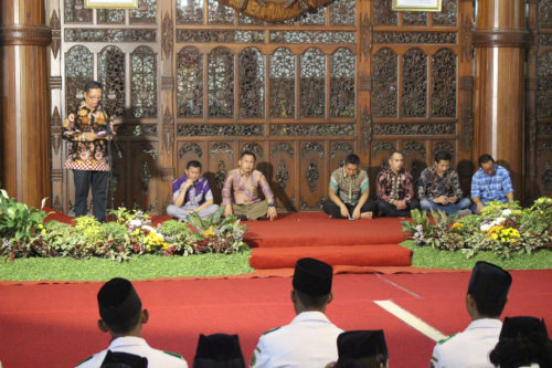 Tulungagung – Komandan Kodim 0807/Tulungagung Letkol Inf Wildan Bahtiar, S.I.P bersama Kasdim, perwira staf dan seluruh Danramil jajaran Kodim Tulungagung mengikuti acara malam tasyakuran peringatan HUT Proklamasi Kemerdekaan RI Tahun 2018 di Pendopo Kongas Arum Kusumaning Bongso alamat Jl. R.A Kartini No. 01 Kabupaten Tulungagung, Minggu (07/10/2018).