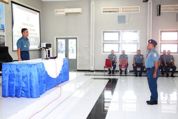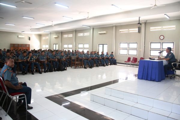 PB|Surabaya – Komandan Komando Latihan (Dankolat) Koarmada II, Kolonel Laut (P) Kisdiyanto di hari pertama Latihan Jungle and Survival Prajurit KRI Koarmada II TA. 2018, memberikan briefing kepada peserta latihan dari satuan kapal jajaran Koarmada II, bertempat di Gedung Mandalika Koarmada II, Ujung Surabaya. Senin, (09/07/2018).