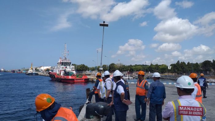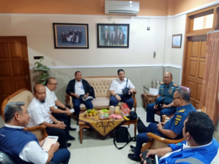 Banyuwangi – Komandan Pangkalan TNI Angkatan Laut (Danlanal) Banyuwangi, Lantamal V, Koarmada II, Letkol Laut (P) Yulius Azz Zaenal, S.H., M.Tr.Hanla, M.M. menerima kunjungan Dirut PT PAL bersama rombongan dalam rangka pengecekan Dermaga APBN Tanjung Wangi Banyuwangi.