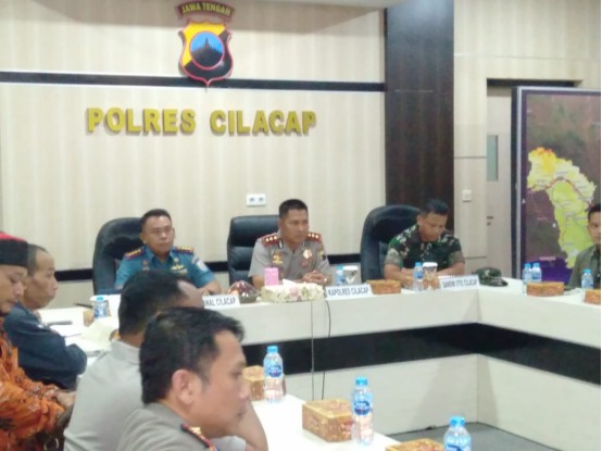 Cilacap – Komandan Pangkalan TNI Angkatan Laut (Lanal) Cilacap, Lantamal V, Koarmada ll, Kolonel Laut (P) Teguh Iman Wibowo menghadiri Rapat Koordinasi Pengamanan Pemilu 2019 melalui vidio conference di Ruang Vicon Polres Cilacap Jl.Ir.H Juanda, Cilacap kemarin.