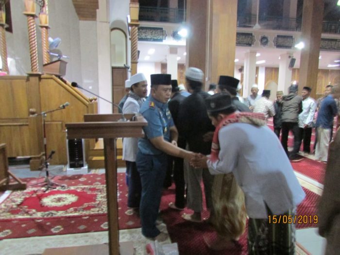 Cilacap – Bulan suci ramadhan adalah bulan yang penuh berkah bagi seluruh umat muslim didunia. Salah satu cara untuk meraih berkah adalah dengan ibadah sholat tarawih berjamah seperti yang dilaksanakan oleh Komandan Pangkalan TNI Angkatan Laut (Danlanal) Cilacap, Lantamal V, Koarmada II, Kolonel Laut (P) Teguh Iman Wibowo beserta Forkopimda, para ulama, personel Lanal Cilacap dan para kaum muslimin di Masjid Agung Darusalam Cilacap JL. Jend. Sudirman No. 34 Kel. Sidanegara Kec. Cilacap Tengah Kab. Cilacap, Rabu malam.