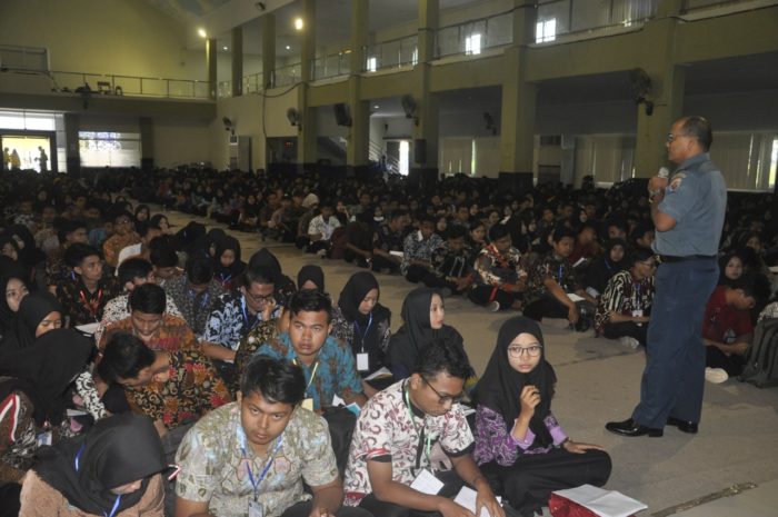 Tegal – Komandan Pangkalan TNI AL (Danlanal) Tegal, Lantamal V, Koarmada II, Letkol Laut (P) Agus Haryanto,SE.,MTr Hanla,.MM memberikan kuliah umum pada 1.275 mahasiswa baru Universitas Pancasakti Tegal (UPS), Senin (26/8).