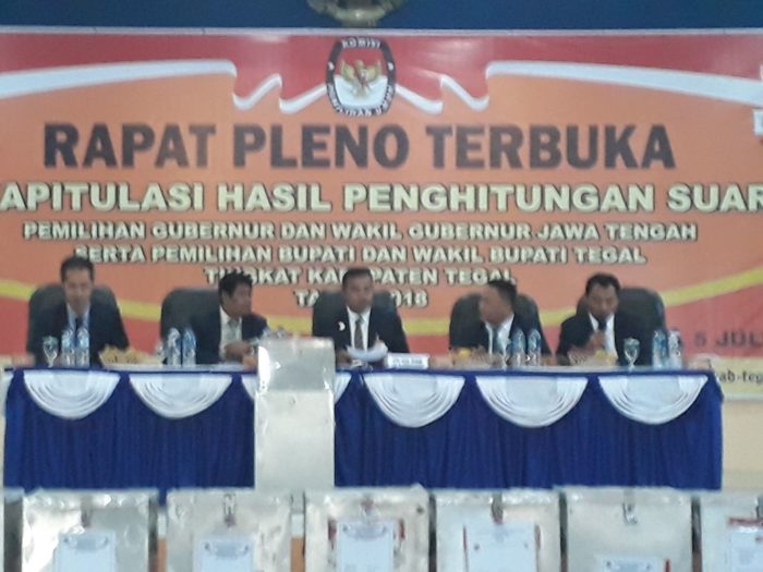 Sidang rapat pleno yang berlangsung dari pagi Hari hingga sore hari tersebut, dipimpin langsung Drs. Sukartono, M.M. selaku Ketua KPUD Kab. Tegal dengan hasil Paslon Bupati Umi Azizah-Ardi dinyatakan menang mutlak dengan perolehan 70,96% atau 518.017 suara.