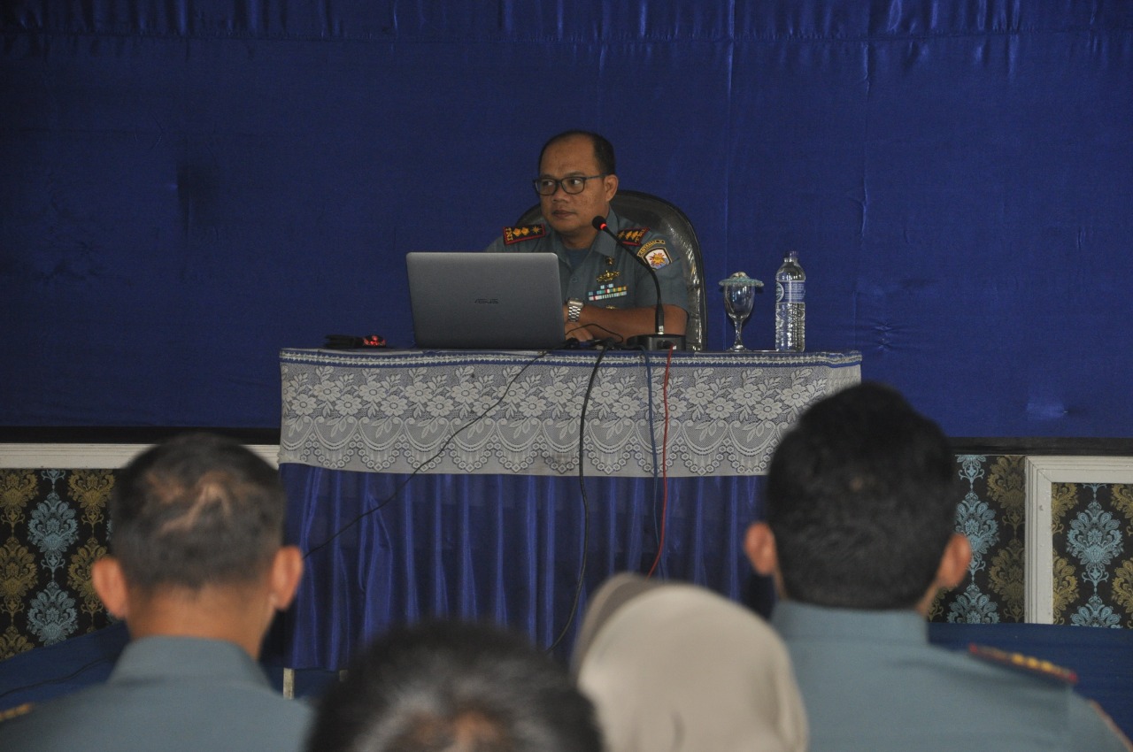 Tegal – Komandan Pangkalan Angkatan Laut (Danlanal) Tegal, Lantamal V, Koarmada II, Letkol Laut (P) Agus Haryanto SE, M.Tr.Hanla, MM, menularkan hasil atau oleh-oleh yang diterimanya saat mengkuti Workshop Revolusi Mental di Mabes TNI-AL Cilangkap Jakarta Timur beberapa waktu lalu.Personel militer maupun PNS Lanal Tegal tampak tampak antusiasme mengikuti kegiatan pengarahan yang dikemas dalam “Jam Komandan” dengan pokok materi Revolusi Mental yang digelar di Aula Sardjoe Mako Lanal Tegal Jl. Proklamasi No. 01 Kota Tegal, Senin (5/8).Dalam pengarahannya Danlanal Tegal menyampaikan beberapa isu strategis dan amanat Kepala Staf TNI Agkatan Laut (Kasal) Laksamana TNI Siwi Sukma Adji, S.E., M.M. yang disampaikannya dalam Workshop Revolusi Mental.”Hal ini dilakukan untuk mencegah menurunnya mental prajurit TNI, dikaitkan dengan pengaruh global yang terjadi saat ini, dan diharapkan selesainya kegiatan ini, seluruh prajurit dan PNS Lanal dapat mengerti dan memahami kondisi yang terjadi dan tetap teguh sebagai prajurit yang bermoral, disiplin dan profesioanlo” Ujarnya.