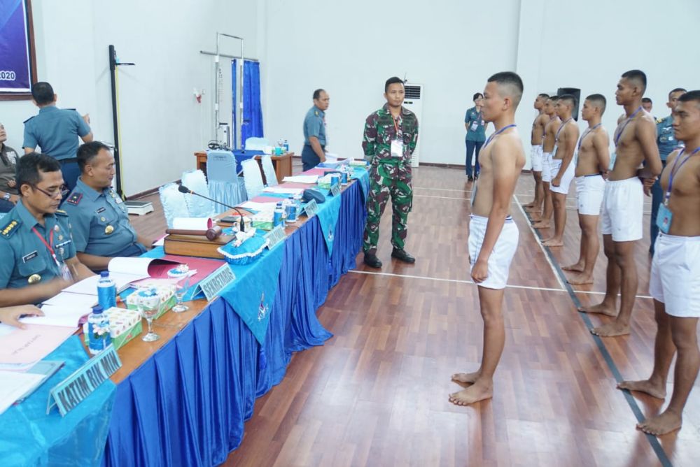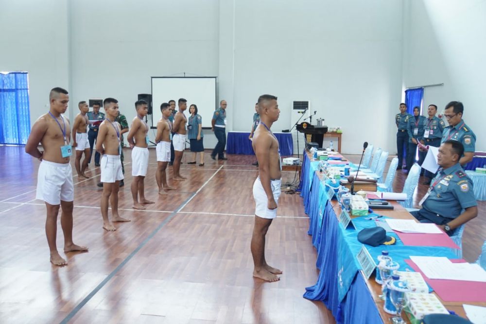 Padang – Kamis (06/02/20) Menyisakan 56 Calon Tamtama PK (Prajurit Karier) gelombang I pada tahun anggaran 2020, yang semula animo sebanyak 514 calon melaksanakan Pantukhirda (Penentuan Terakhir Daerah) di gedung Nanggala Markas Komando (Mako) Pangkalan Utama TNI AL (Lantamal) II Padang jalan Bukit Peti Peti Teluk Bayur Padang.