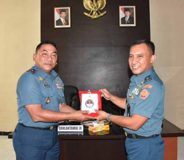 PB|Ambon – Komandan Lantamal IX Ambon Laksamana Pertama TNI Antongan Simatupang menerima kunjungan Kepala Pusat Penelitian dan Pengembangan Strategi Pertahanan Balitbang Kementerian Pertahanan RI (Kapuslitbang Strahan Kemhan RI) Laksamana Pertama TNI Ir. Agus Rustandi, M,Eng.Sc., MMDS., bersama Tim Kelompok Kerja (Pokja) Peneliti Puslitbang Strahan Kemhan di Ruang Rapat Markas Komando Lantamal IX Ambon. Selasa (03/04/2018). Kunjungan Kapuslitbang Strahan Kemhan RI beserta Tim Pokja di Lantamal IX melaksanakan acara Focus Group Discussion (FGD) bersama instansi terkait dan tokoh agama serta tokoh masarakat dalam rangka pengumpulan data untuk penelitian peningkatan Binter TNI dalam rangka menghadapi ancaman non militer.
