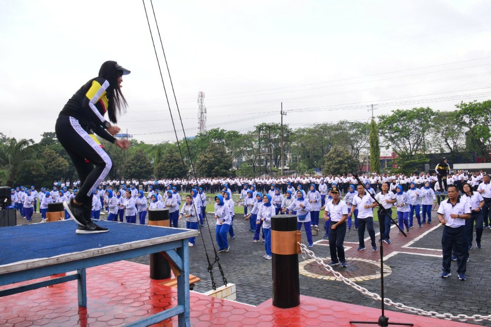 Acara olahraga bersama diawali dengan apel pagi serta pembagian kupon kemudian dilanjutkan senam aerobik, yang di pandu oleh duo pesenam dari Sanggar Body Art Mastrip Surabaya. Yang mana gerakan demi gerakan diikuti dengan penuh semangat oleh seluruh personel Lantamal V.