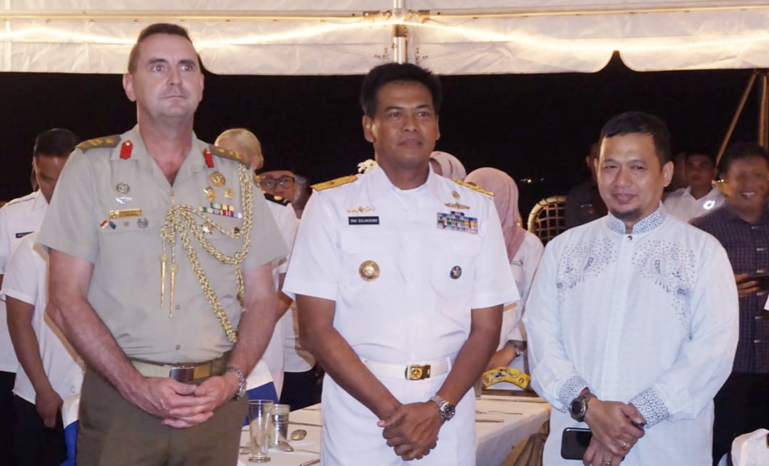 Captain Darren Grogan selaku Komandan Kapal Perang Australia HMAS Success D-304 dalam sambutannya menyampaikan selamat datang kepada seluruh undangan pada acara jamuan makan malam di atas Kapal Perang Australia HMAS Success D-304 ini. “Sungguh suatu kehormatan bisa menjamu para undangan sekalian di malam bulan puasa seperti saat sekarang ini, diharapkan para undangan sekalian dapat menikmati hidangan yang telah disediakan oleh para awak kru kapal HMAS Success ini”, ujarnya.