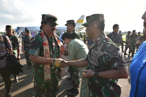 PB|Pontianak – Komandan Pangkalan Utama TNI Angkatan Laut (Danlantamal) XII Pontianak Laksamana Pertama (Laksma) TNI Gregorius Agung W. D. M.Tr (Han) Sambut Kedatangan Panglima TNI Dan Kapolri di VIP Room Lanud Supadio, Jalan Arteri Supadio Km. 17, Sungai Raya Kubu Raya, Kalimantan Barat. Panglima TNI dan Kapolri bersama rombongan tiba di Bandara Internasional Supadio Pontianak menggunakan Pesawat Boeing 737 VIP TNI AU dari Bandara Tjilik Riwut Palangkaraya Kalteng, Panglima TNI Marsekal TNI Hadi Tjahjanto dan Kapolri Jenderal Polisi Tito Karnavian bersama rombongan yakni Ketua Umum Dharma Pertiwi Ibu Hadi Tjahjanto, Wakasad Letjen TNI Tatang Sulaiman, Asintel Panglima TNI Mayjen TNI Benny Indra Pujihastono. Selain itu Waasops Panglima TNI Khairil Lubis, Kapuspen TNI Majen TNI M Sabrar Fadhilah, Karo Penmas Polri Brigjen Pol M Iqbal serta beberapa perwira TNI dan Polri lainnya.