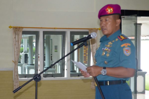 PB|Surabaya – Komandan Resimen Artileri-1 Marinir Kolonel Marinir Ainur Rofiq,S.Pi., menerima Laporan Korps Kenaikan Pangkat Perwira Menart-1 Marinir, di ruang Rekreasi Batalyon Arhanud-1 Mar Karangpilang, Surabaya, Selasa (2/4/18).