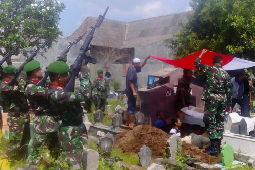 PB | Madiun – Bertempat di TPU Desa Oro-Oro Ombo Kecamatan Kartoharjo Kota Madiun telah dilaksanakan Prosesi Pemakaman Militer Almarhum Kopka Suparno NRP 566168 Anggota Kodim 0813/Bojonegoro yang beralamat di Asrama Korem 081/DSJ Busbow Jl. Diponegoro Kecamatan Kartoharjo Kota Madiun yang meninggal dunia pada tanggal 14 Agustus 2016 pukul 19.30 WIB karena sakit diikuti sekitar 100 orang. Senin(15/8/16)Dalam Prosesi Pemakaman Militer tersebut sebagai Inspektur Upacara Danramil 0803/15 Kartoharjo Kapten Inf Juari, Komandan Upacara Batuud Koramil 0803/15 Kartoharjo Pelda Budi. Tanda/Bintang Jasa yang miliki Almarhum yaitu Satya Lencana Kesetiaan VIII, XVI, XXIV, Satya Lencana Seroja dan Nararia.