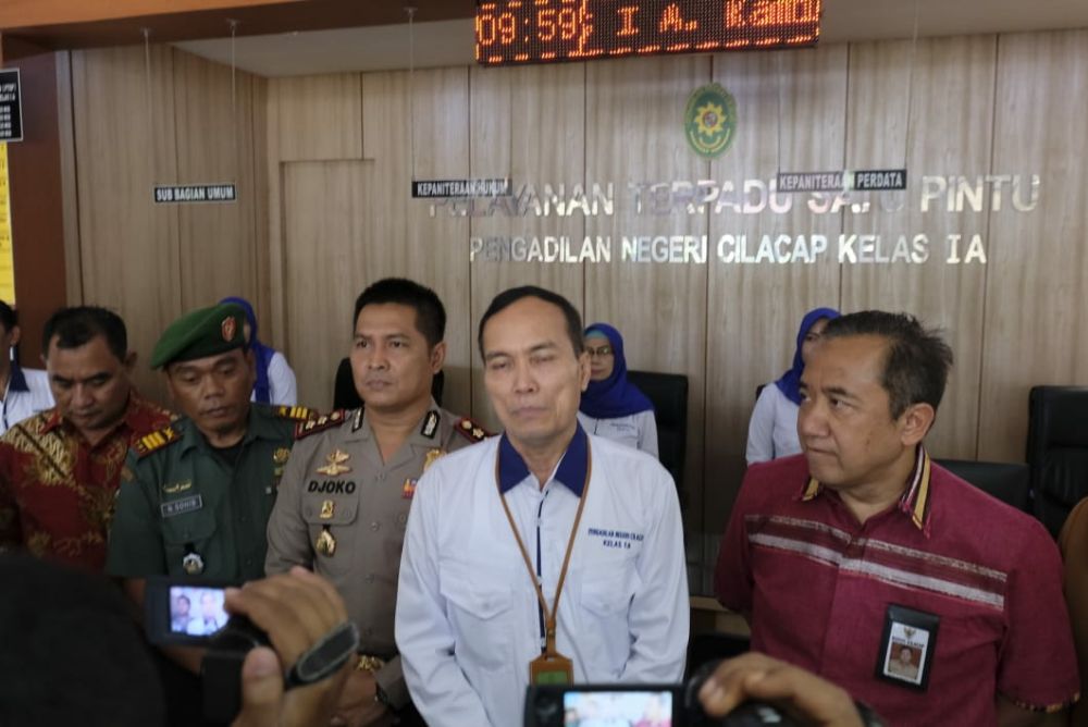 Sementara itu Bupati Cilacap H. Tatto Suwarto Pamuji atas nama pribadi dan Pemda Kabupaten Cilacap mengucapkan selamat atas pelaksanaan Zona Integritas Bebas Korupsi yang di laksanakan oleh Pengadilan Negeri Cilacap. Baginya, saat ini sudah saatnya pelayanan terpadu satu pintu dilakukan untuk mempercepat pelayanan kepada masyarakat.