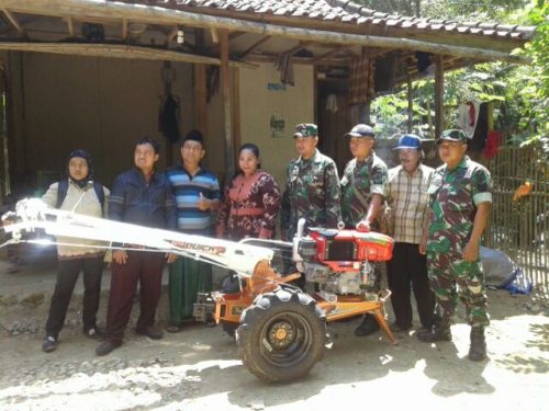 PB | Bangkalan – Kodim 0829/Bangkalan melalui Komandan Koramil (Danramil) 10/Galis Kapten Inf Sugeng menyerahkan bantuan satu unit handtraktor kepada petani dari kelompok tani Blateran di Desa Blateran, Kecamatan Galis, Kabupaten Bangkalan, Madura, Senin 8 Agustus 2016.