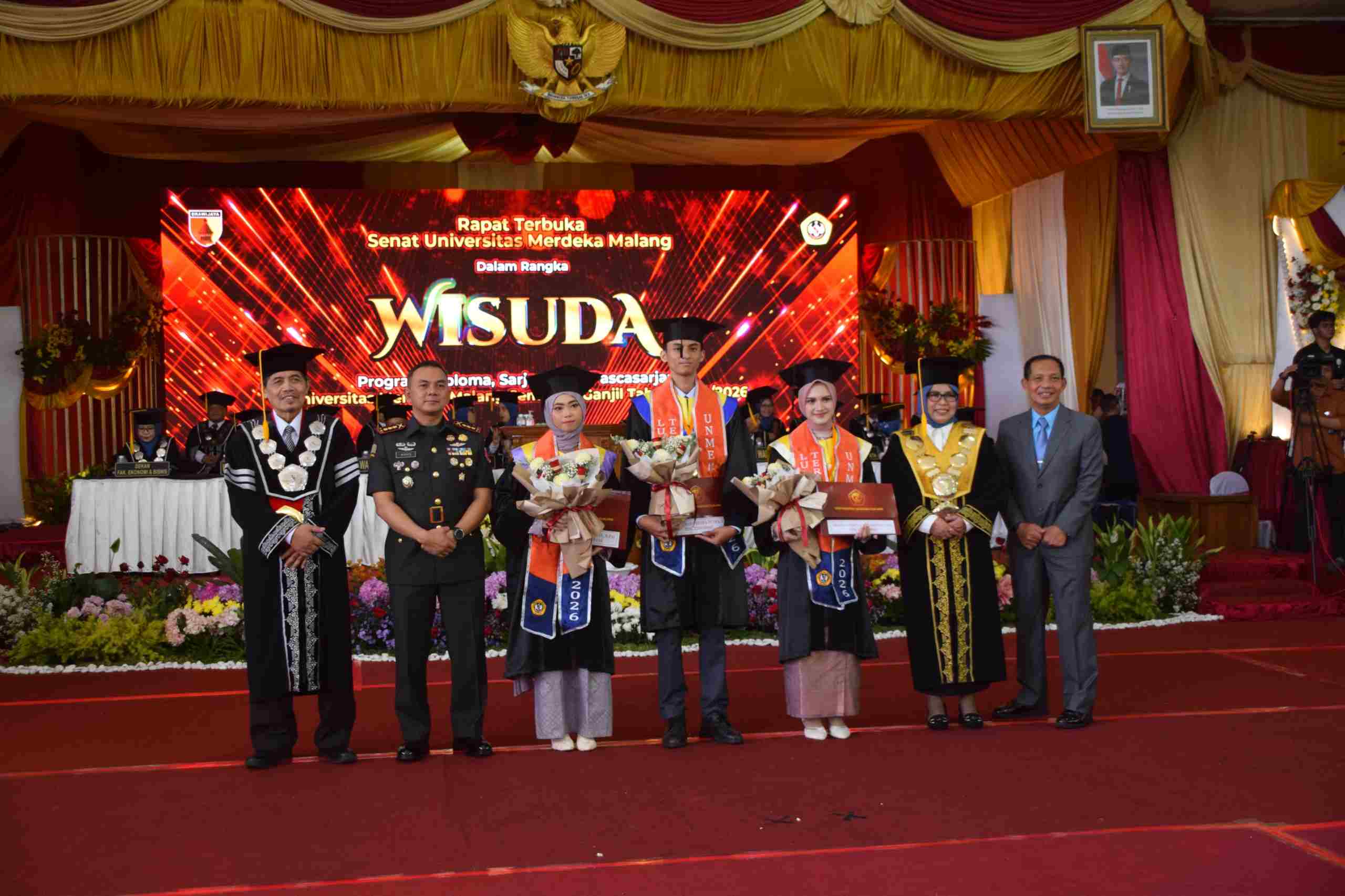 Malang – Komandan Korem 083/Baladhika Jaya, Kolonel Inf Wahyu Ramadhanus S., S.Sos., M.M.S., M.Han., menegaskan pentingnya peran generasi terdidik sebagai perekat persatuan bangsa di tengah dinamika sosial yang terus berkembang. Pesan tersebut disampaikan saat menghadiri Rapat Terbuka Senat Universitas Merdeka Malang dalam rangka Wisuda Program Diploma, Sarjana, dan Pascasarjana Semester Ganjil Tahun Akademik 2025/2026 di Gedung Balai Merdeka, Minggu (26/4).