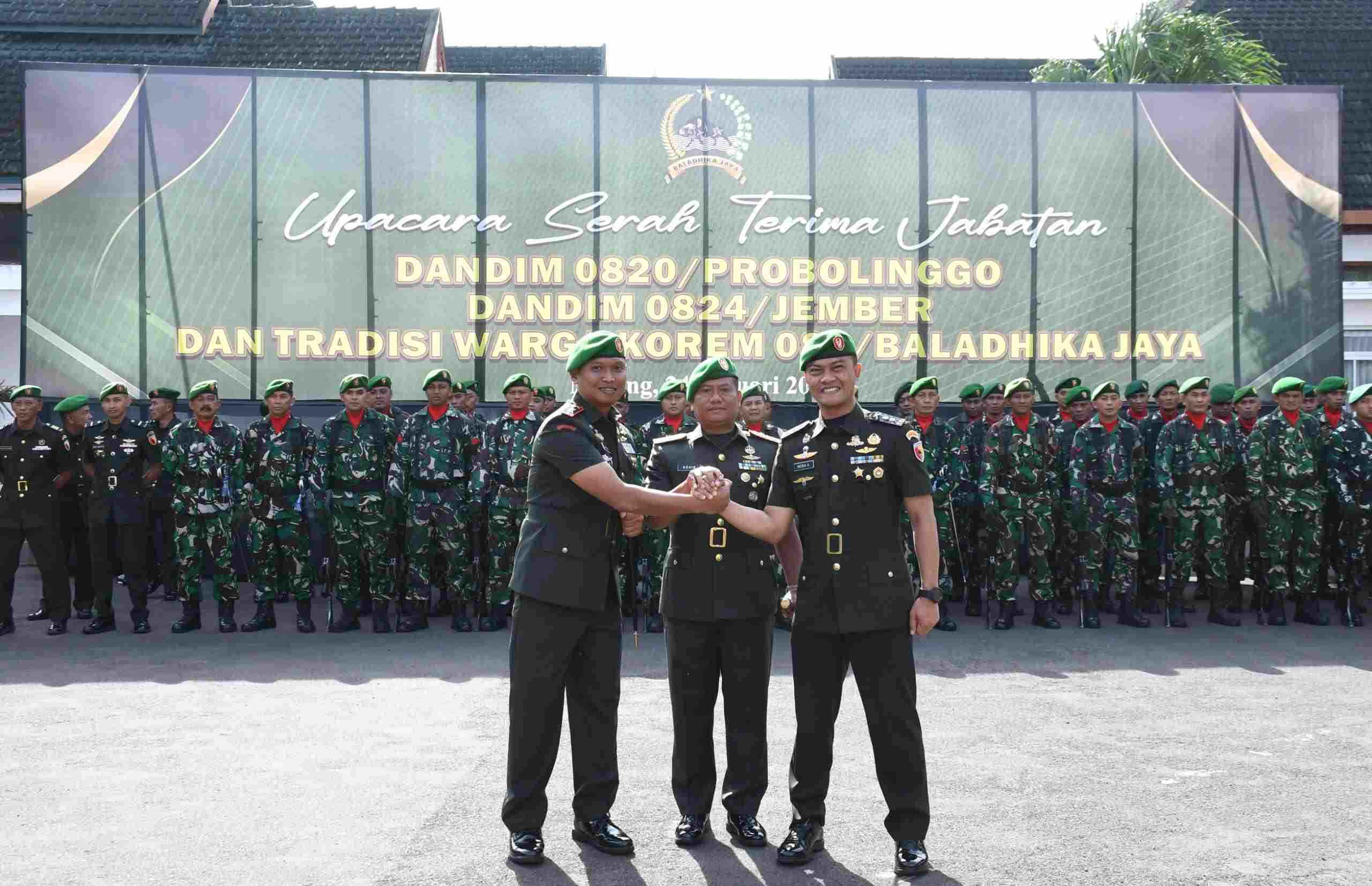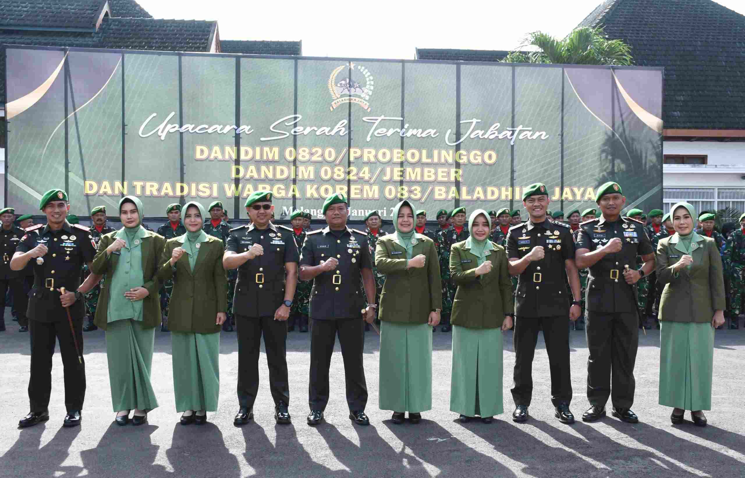 Adapun pejabat yang melaksanakan serah terima jabatan di antaranya Letkol Inf Ribut Yudo Apriantono, S.M. sebagai Dandim 0820/Probolinggo, dan Letkol Inf Rifqi Muhammad Syuhada, S.I.P., M.I.P. sebagai Dandim 0824/Jember. Selain itu, turut dilaksanakan penerimaan tradisi satuan Mayor Arh Imran, S.H. sebagai Pasipers Korem 083/Bdj dan Mayor Cke Sunu Umboro, S.S. sebagai Pasibhakti TNI Siter Korem 083/Bdj.