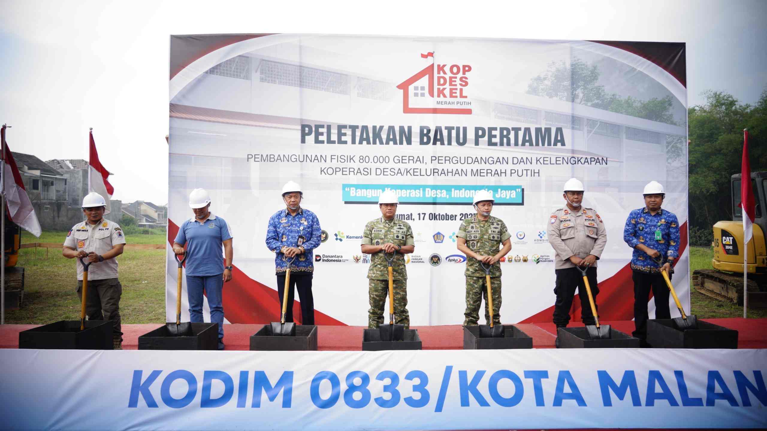 Kegiatan tersebut dihadiri Danrem 083/Baladhika Jaya Kolonel Inf Kohir, serta unsur Forkopimda Kota Malang, ditandai dengan peletakan batu pertama pembangunan koperasi sebagai simbol dimulainya program nasional tersebut.