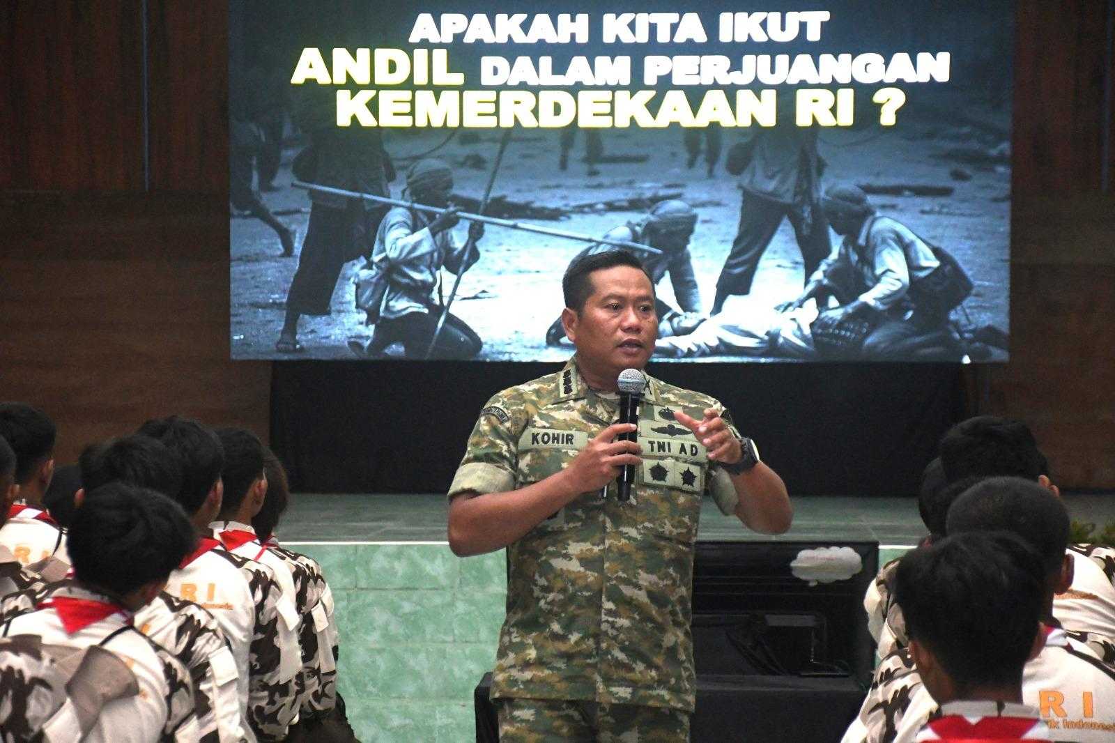“Kalian harus menjadi generasi yang menjaga bangsa dari perpecahan. Jangan mudah diombang-ambingkan provokasi, tetapi bangunlah persatuan yang kokoh,” pesan Danrem membuka materinya.