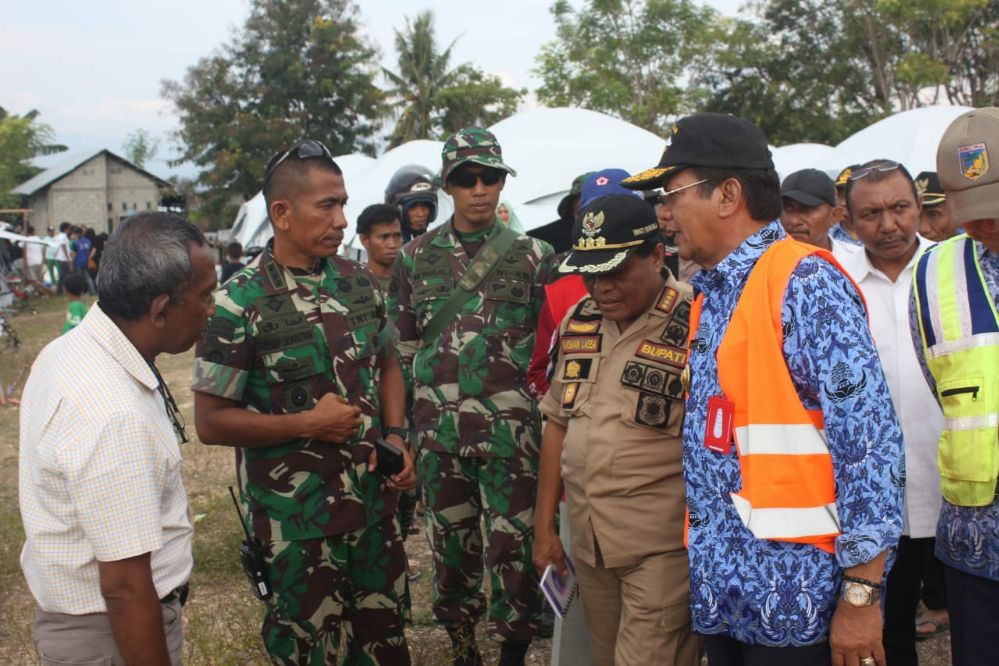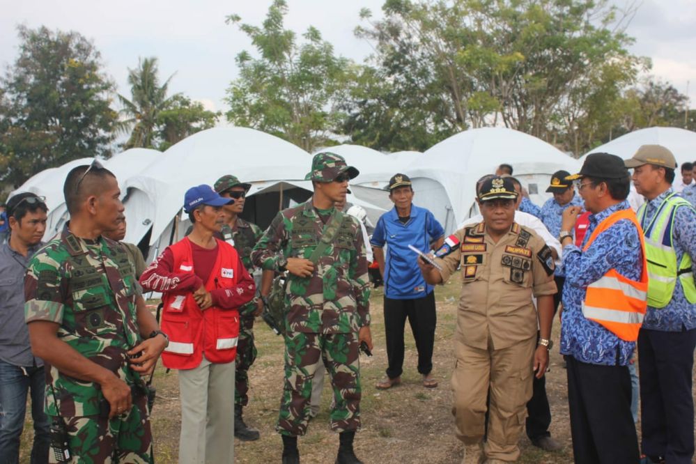 Donggala – Gubernur Sulawesi Tengah Bapak Longki Djonggala mengunjungi Lokasi pengungsian disambut hangat oleh Kolonel Inf Josep Tanada Sidabutar selaku Komandan Sektor Donggala Satuan Tugas Penanggulangan Bencana Divisi 3 Kostrad di Desa Gunung Bale, Kecamatan Banawa, Kabupaten Donggala, Rabu (17/10).