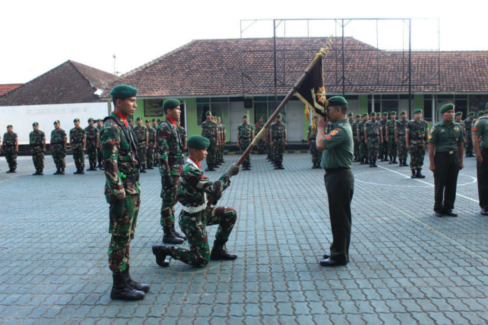 PB|Malang – Komandan Batalyon Perbekalan dan Angkutan 2 Kostrad, Letkol Cba Edwar Rizal, S.Sos. memimpin upacara pelepasan pindah Satuan prajurit di lapangan Markas Yonbekang 2 Kostrad, Malang. Senin (7/5/2018).