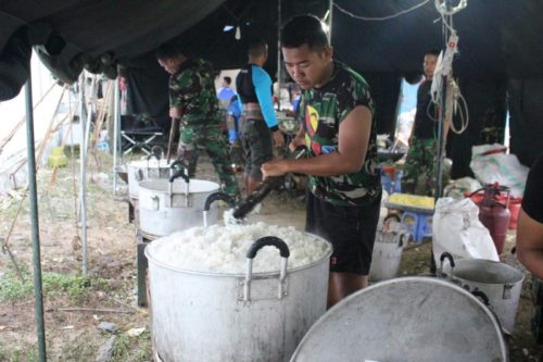 Regu perbekalan yang diawaki oleh 10 orang anggota ini secara bergantian melayani para pengungsi. Mereka sudah terbiasa menangani ini, mereka sudah sering menyiapkan makanan dengan jumlah yang besar dan mereka sudah terampil, kata Sertu Dedi Irfan Jaya.(penkostrad|red|novon)